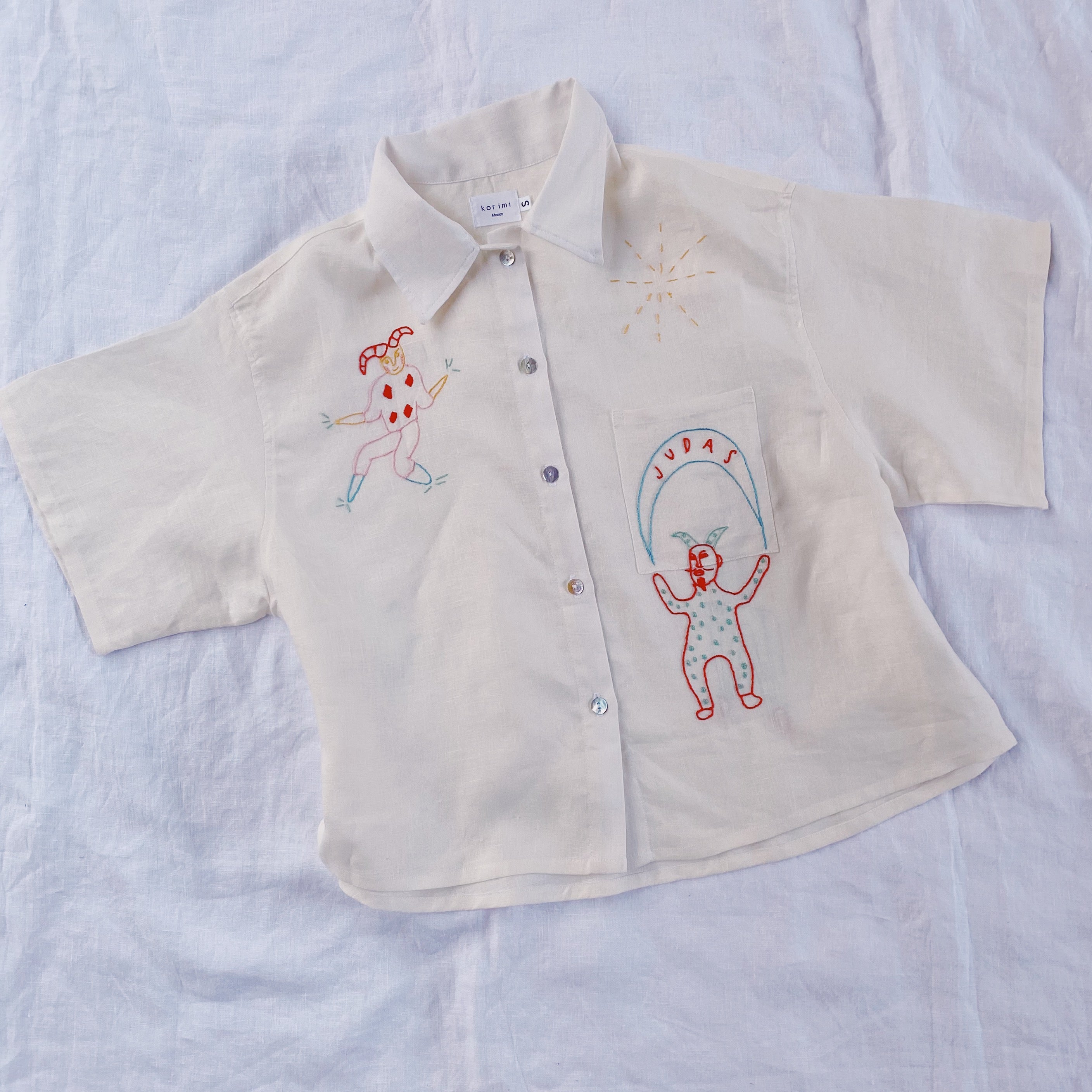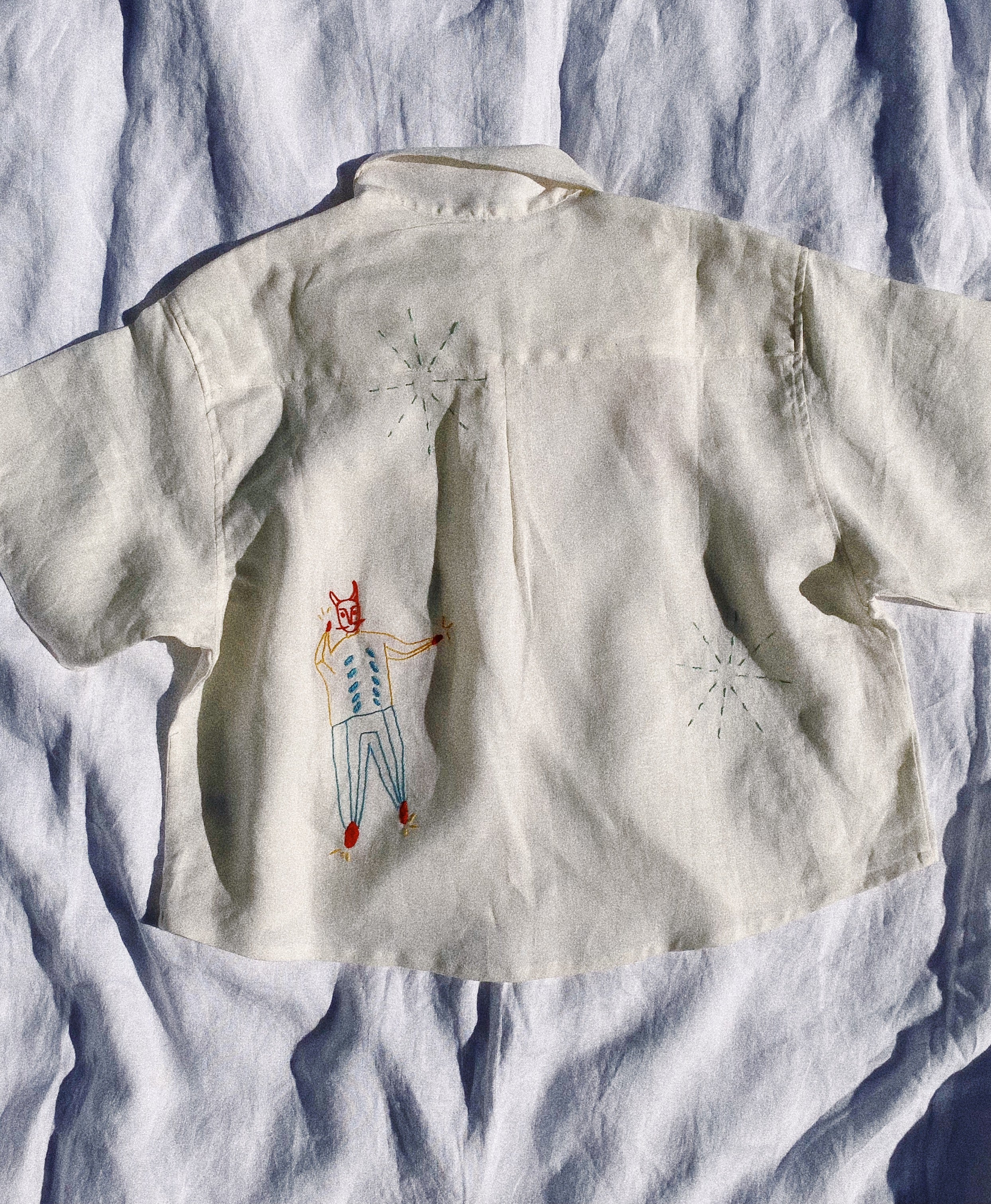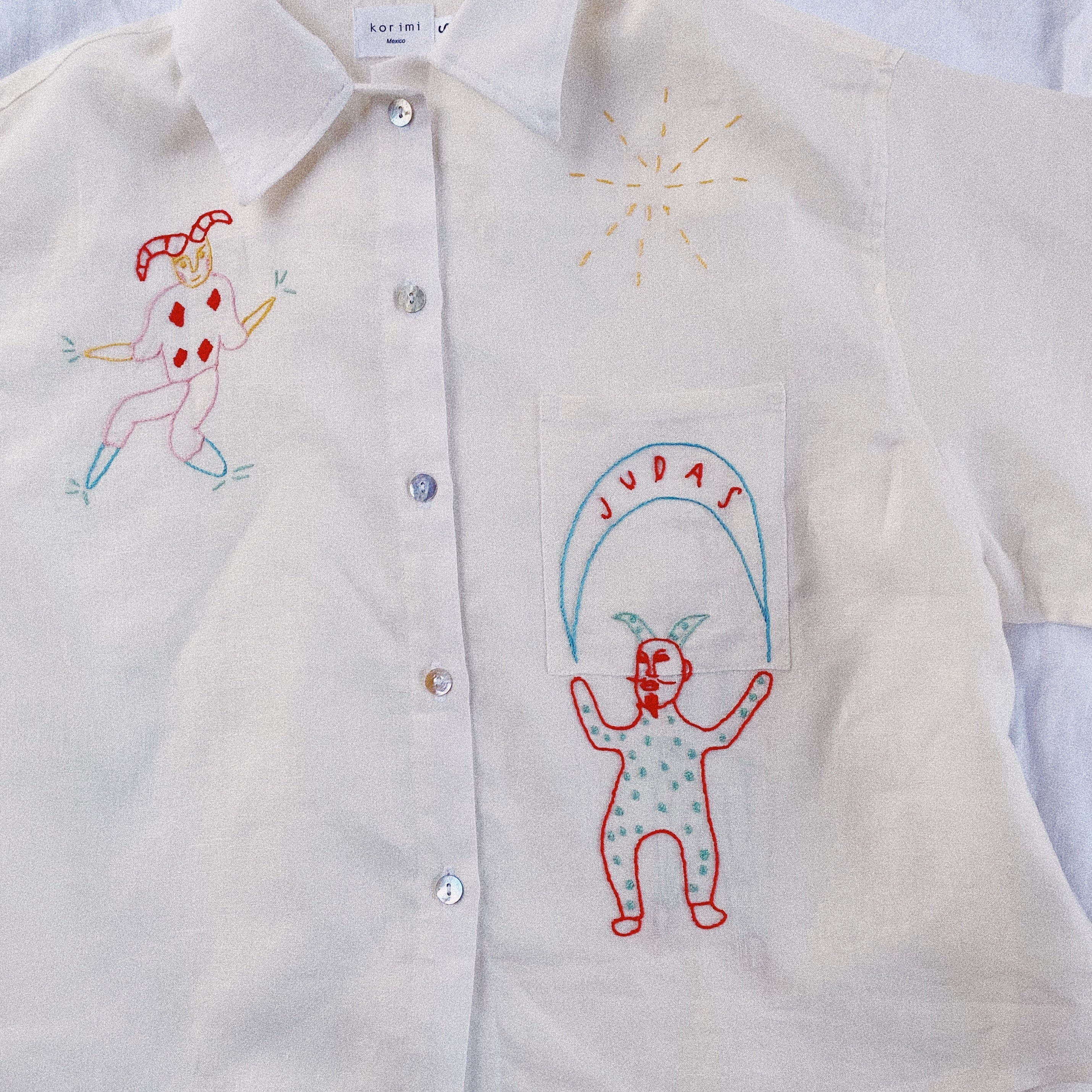 The Judas shirt pays tribute to one of Mexico’s most powerful and symbolic traditions: the burning of Judas effigies. Rooted in ancient rites, this ritual marks the arrival of spring and the beginning of the planting season. Fire becomes a force of purification—for the body, for the spirit, and for the land.