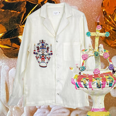 Adding to its charm, choose one of our two unique tags: one in red with a funky cat illustration and another showcasing a serene green and blue Mexican landscape. These details make each piece truly one-of-a-kind.