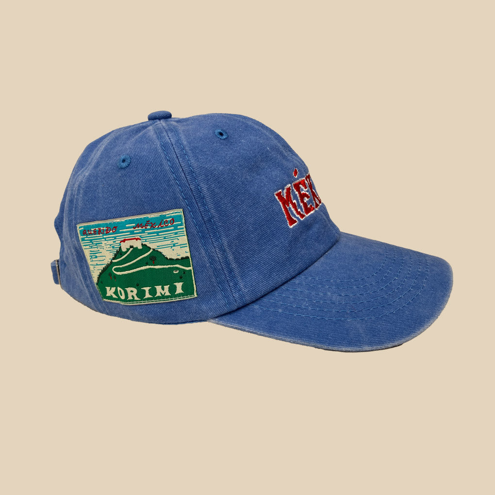 The México blue cap draws inspiration from vintage Mexican souvenir styles, blending nostalgia with timeless design. Each cap features thoughtful details, including our signature logo-embroidered patch on the side—a hallmark of our brand.