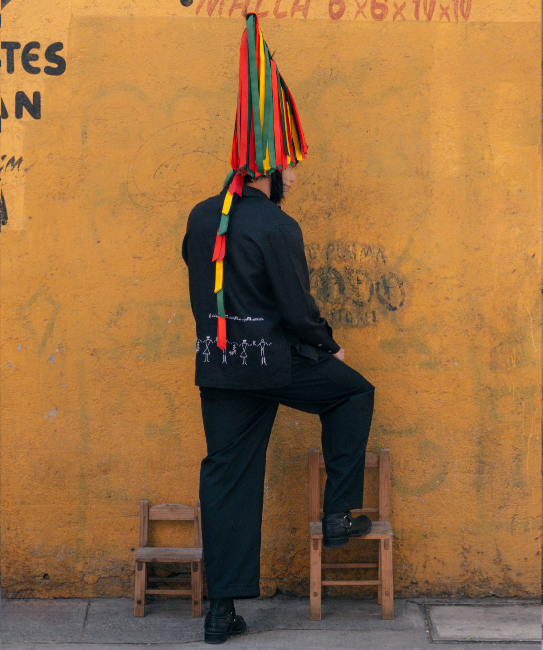 Embroidered with silhouettes of dancers, bells ringing on their legs, and flowers gracing their hands, this piece unites movement and memory. It holds ten hours of intricate embroidery—a tribute to the hands that weave the hidden rhythms of our culture.
